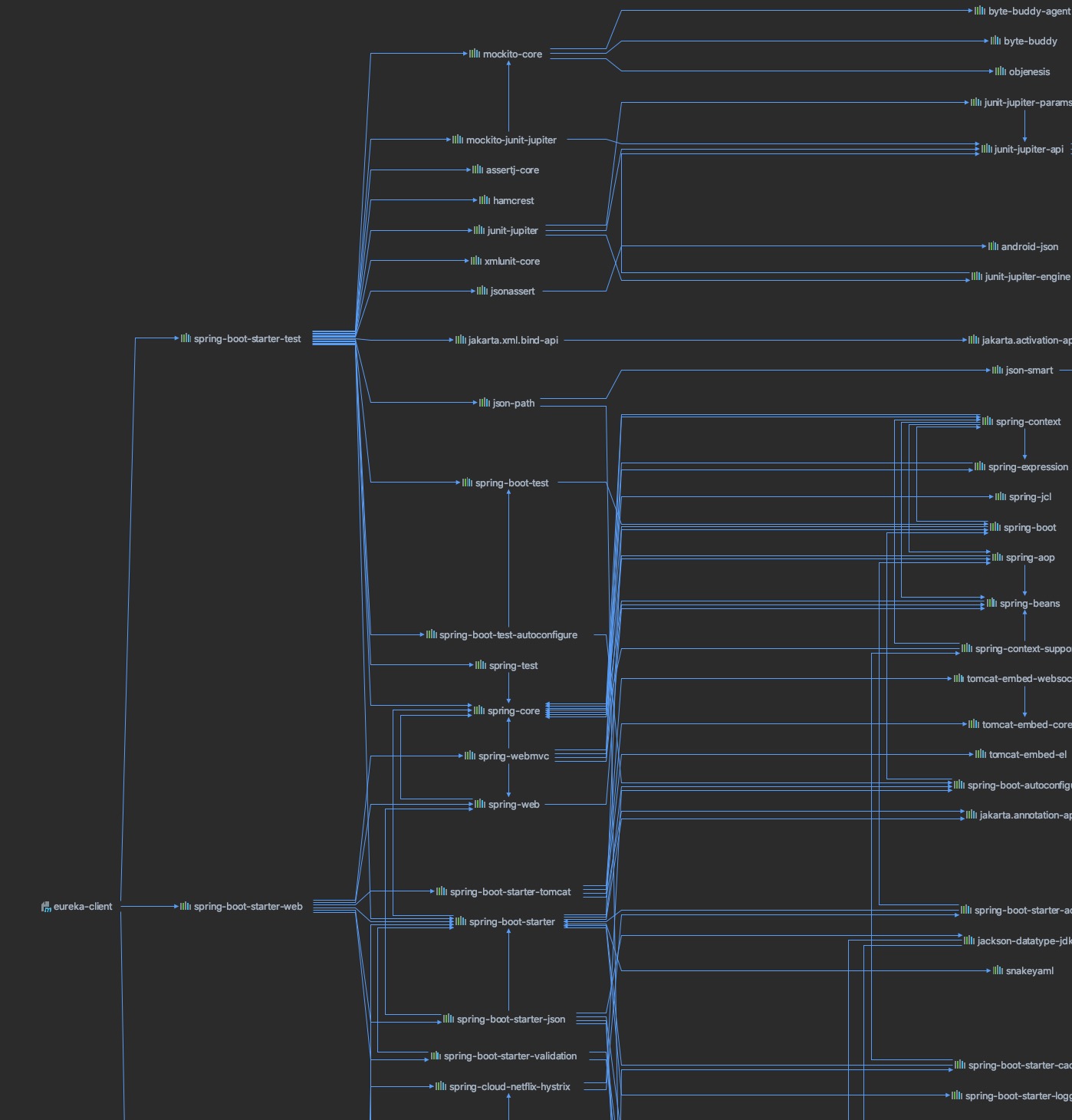 1 2 3 4 5 6 7 8 9 10 11 12 13 14 15 16 <dependency > <groupId > org.springframework.cloud</groupId > <artifactId > spring-cloud-starter-netflix-eureka-client</artifactId > </dependency > <dependency > <groupId > org.springframework.boot</groupId > <artifactId > spring-boot-starter-test</artifactId > <scope > test</scope > <exclusions > <exclusion > <groupId > org.junit.vintage</groupId > <artifactId > junit-vintage-engine</artifactId > </exclusion > </exclusions > </dependency >