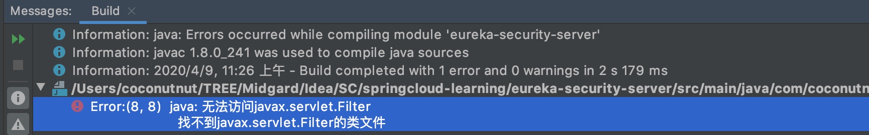 关于eureka-security-server的依赖 发现教程里写的依赖是