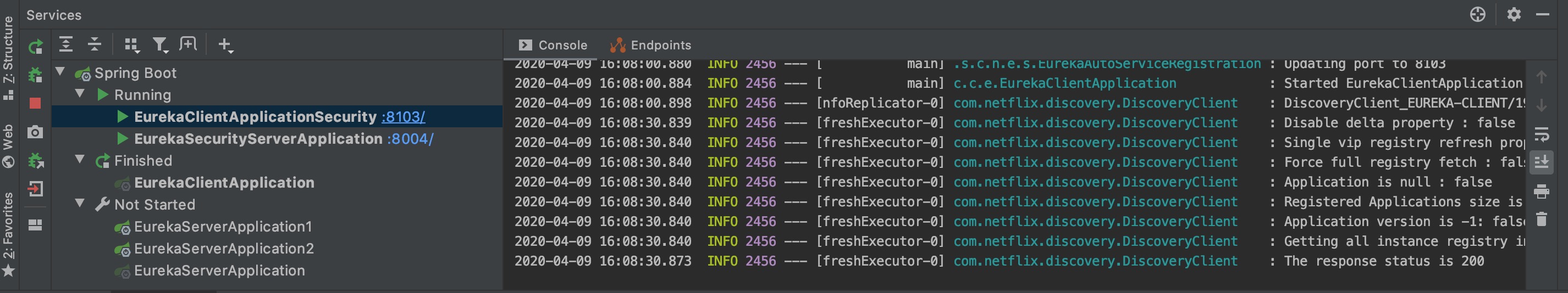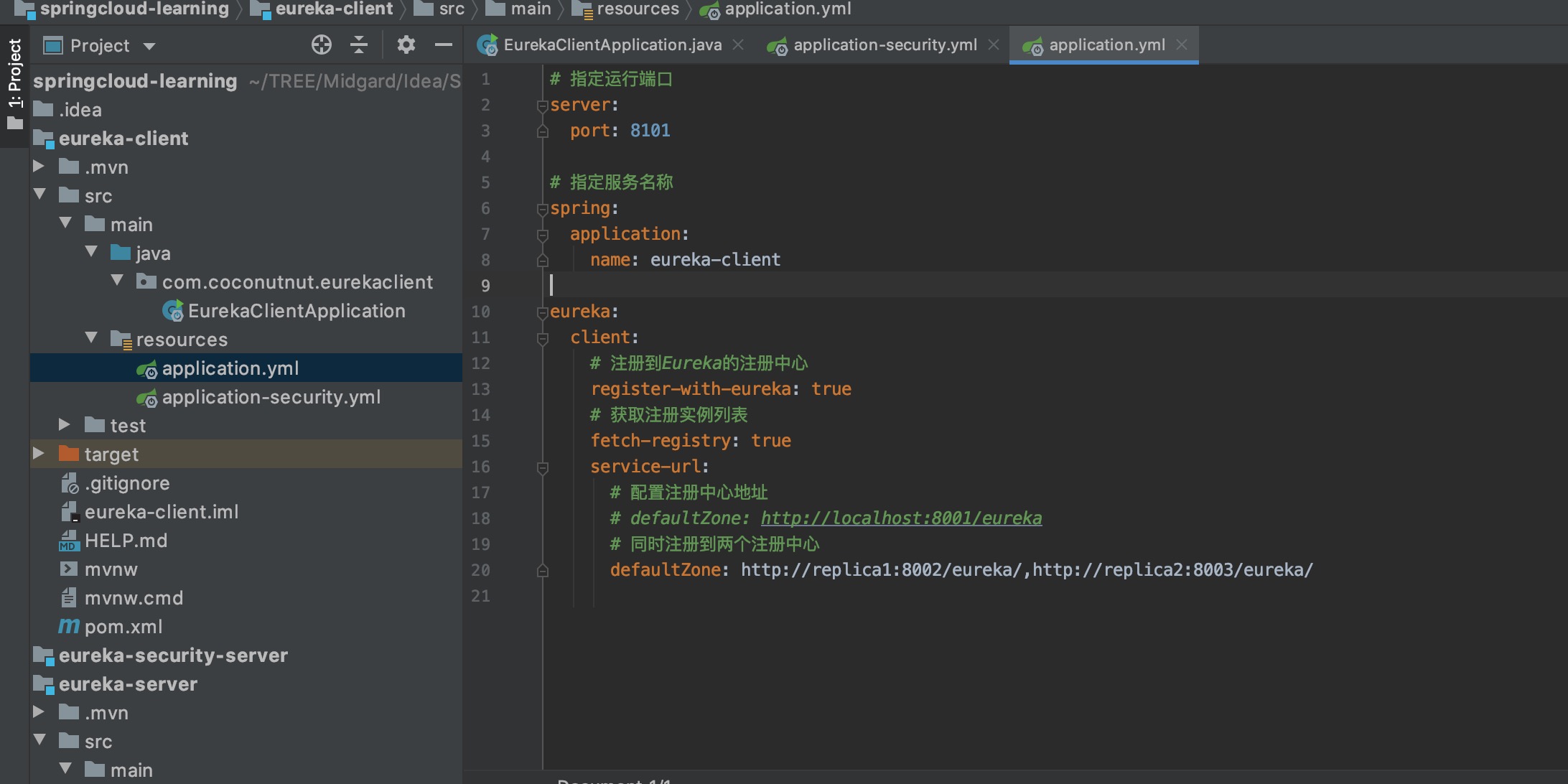 DEBUG:以application-security.yml配置运行eureka-client 现在eureka-client有2个yml