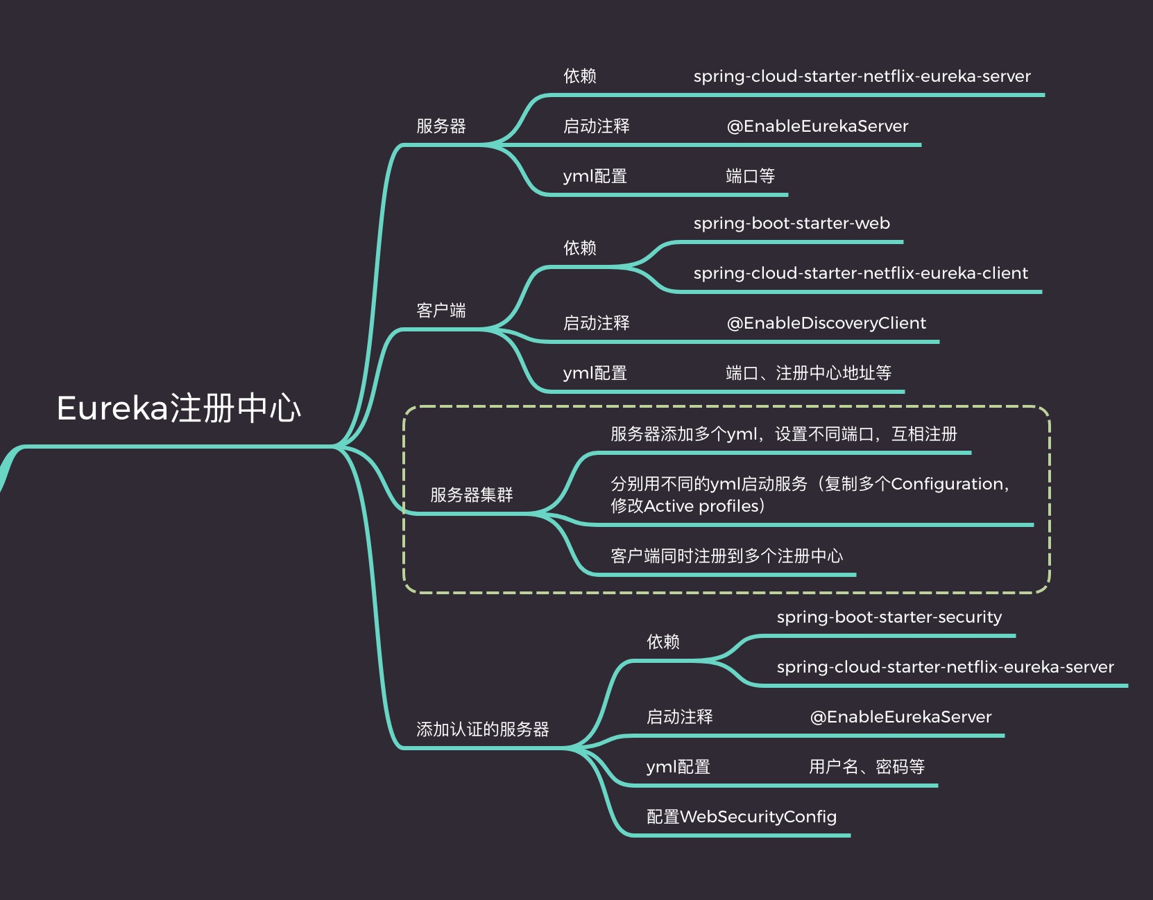1 2 3 4 5 6 7 8 9 <dependency > <groupId > org.springframework.cloud</groupId > <artifactId > spring-cloud-starter-netflix-eureka-server</artifactId > </dependency > <dependency > <groupId > org.springframework.boot</groupId > <artifactId > spring-boot-starter-security</artifactId > </dependency >