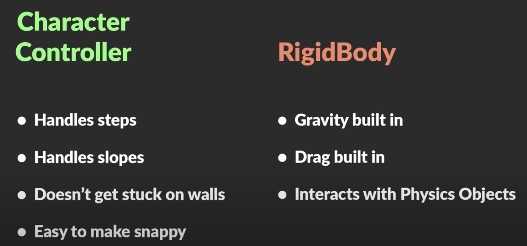 看教程里的总结,用Character Controller和用RigidBody来控制确实挺不一样的,后面得看看用哪个更合适