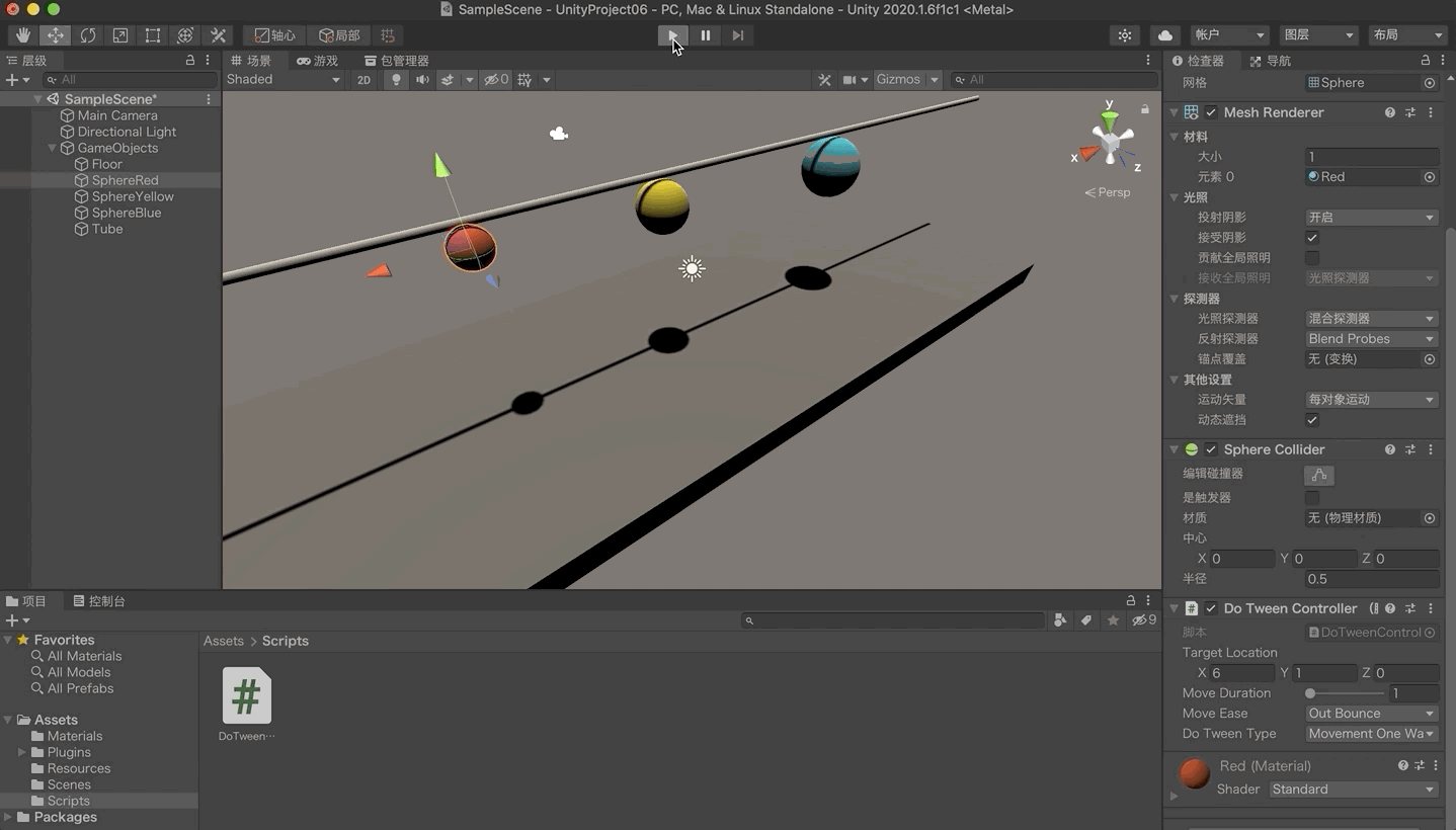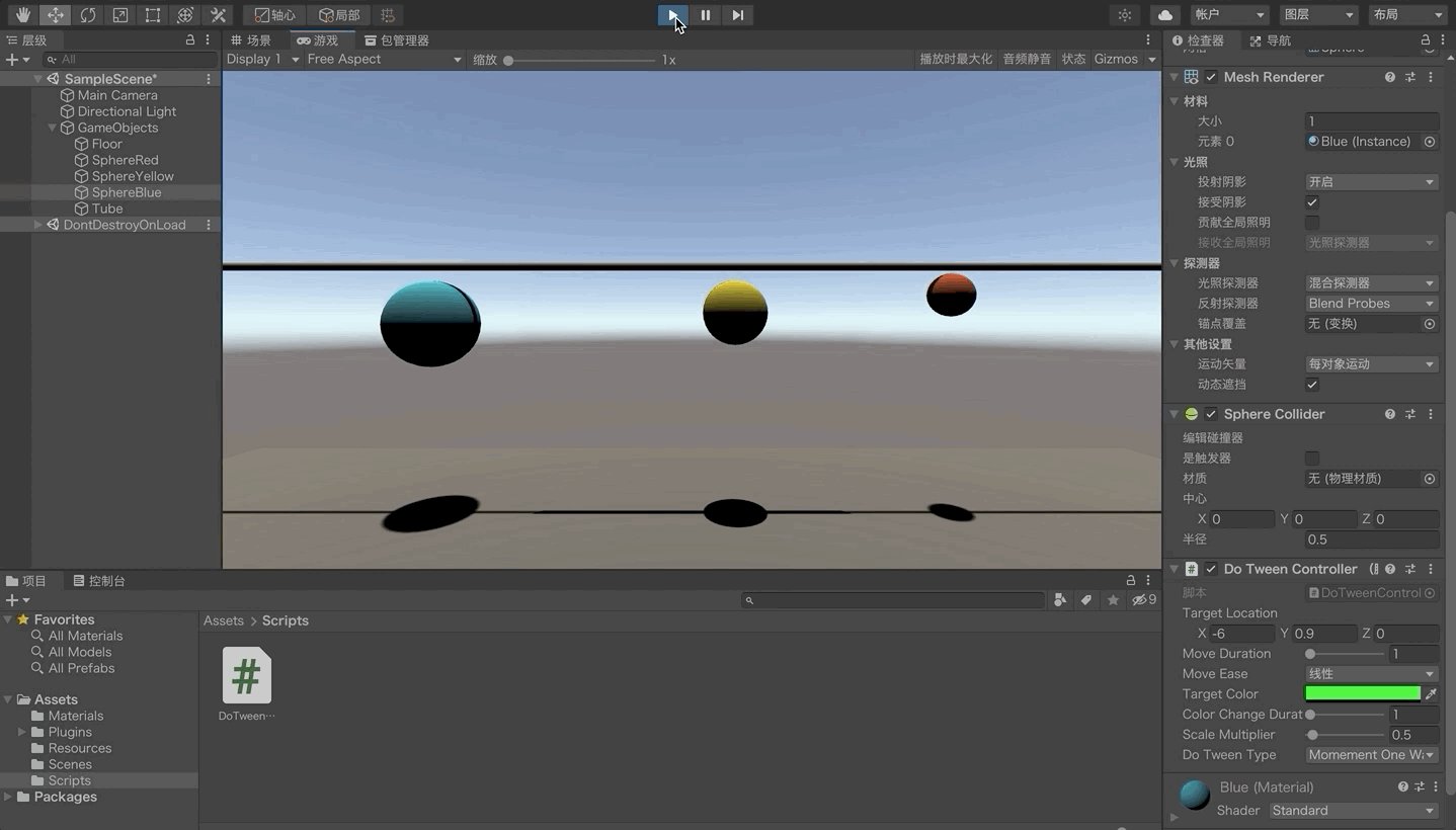 if(doTweenType == DoTweenType.MovementOneWay){             transform.DOMove(targetLocation, moveDuration).SetEase(moveEase);         }         else if(doTweenType == DoTweenType.MovementTwoWay){             StartCoroutine(MoveWithBothWays());         }         else if(doTweenType == DoTweenType.MovementOneWayColorChange){             // another way             DOTween.Sequence()                 .Append(transform.DOMove(targetLocation, moveDuration).SetEase(moveEase))                 .Append(transform.GetComponent<Renderer>().material.DOColor(targetColor, colorChangeDuration).SetEase(moveEase));         }         else if(doTweenType == DoTweenType.MomementOneWayColorChangeScaleChange){             DOTween.Sequence()                 .Append(transform.DOMove(targetLocation, moveDuration).SetEase(moveEase))                 .Append(transform.GetComponent<Renderer>().material.DOColor(targetColor, colorChangeDuration).SetEase(moveEase))                 .Append(transform.DOScale(scaleMultiplier, moveDuration).SetEase(moveEase));         }     }