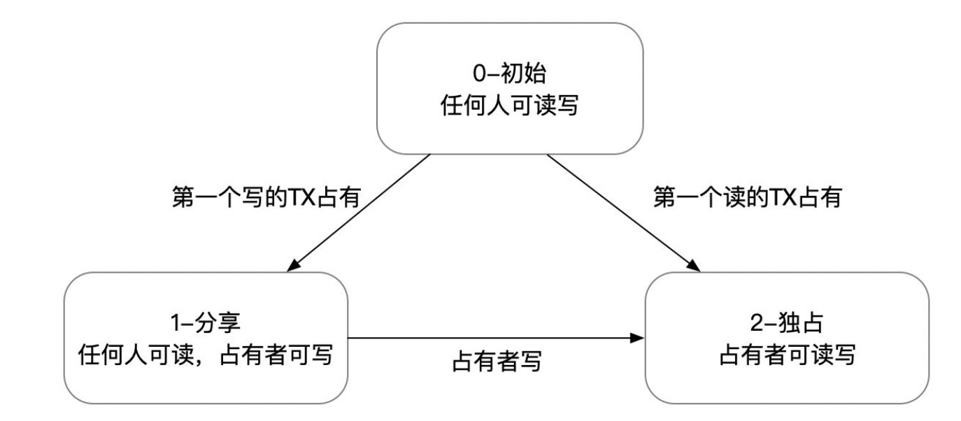 且1状态中,如果没有其他人读过,占有者可写。如果有人读过,则不可写了。