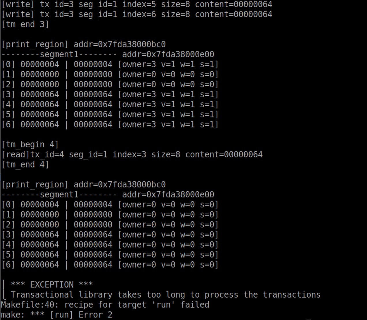 目前本地测试一轮中的transaction没什么问题,但是tm_end()、调用batcher_cleanup()之后,打印region出错