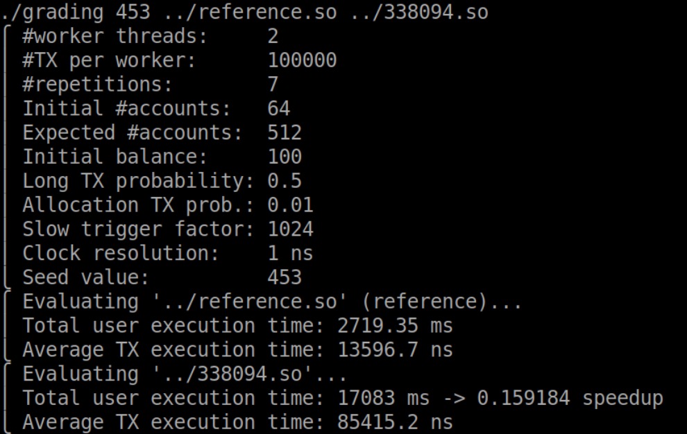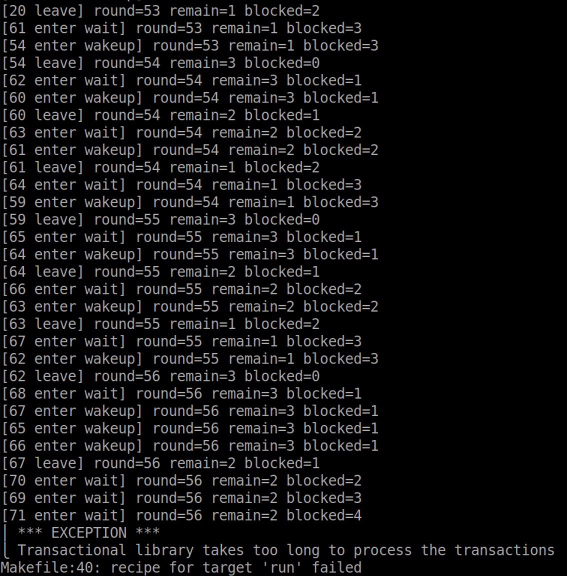 - 测试报错Transactional library takes too long to process the transactions,是功能就不对,和线程数量、transaction数量、print没什么关系。