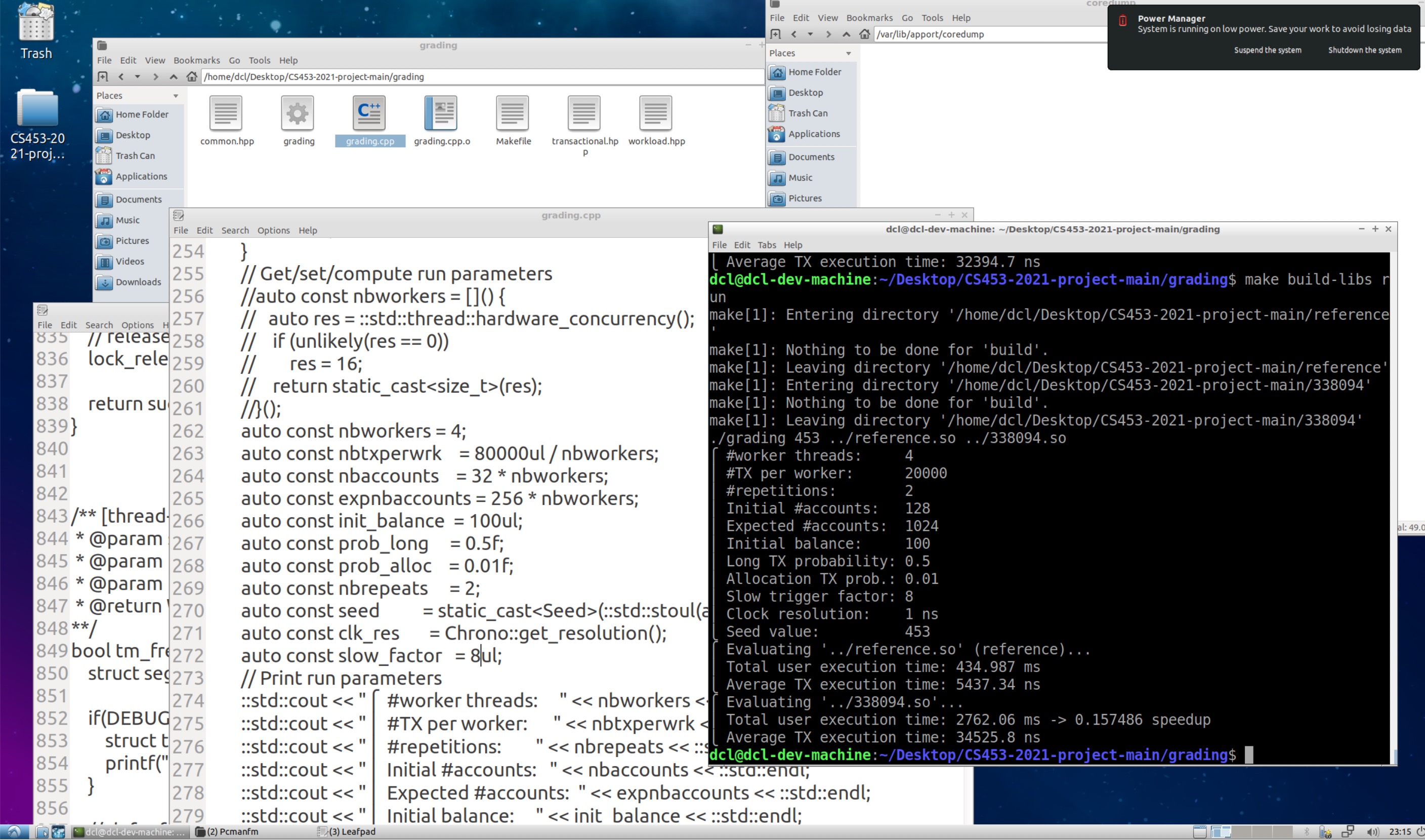 1  | Core was generated by `./grading 453 ../reference.so ../338094.so'.  |
